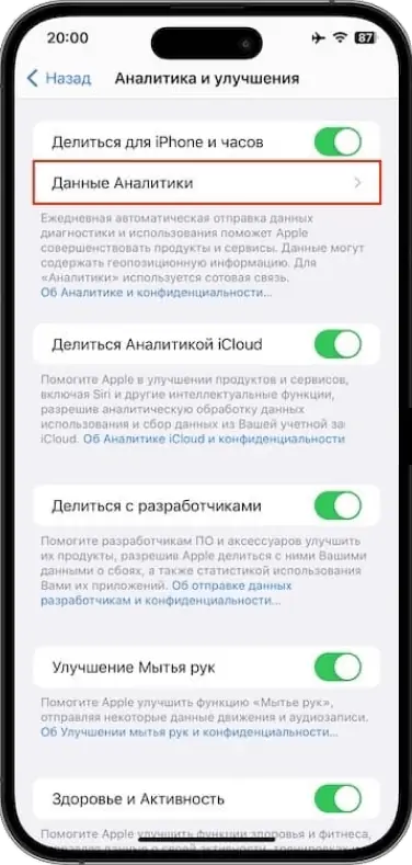 Настройки → Конфиденциальность → Аналитика и улучшения → Данные аналитики. Здесь хранятся журналы, в которых фиксируются сбои питания, ошибки заряда и нестабильность. Для обычного пользователя они не слишком наглядны, но в сервисе по ним можно точно понять, насколько изношен аккумулятор.