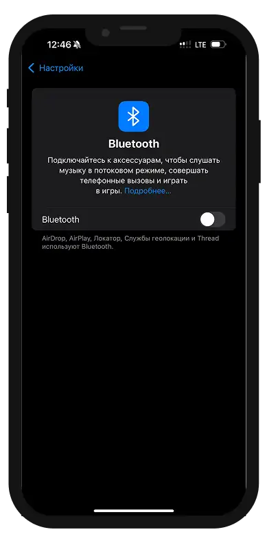- Зайдите в «Настройки» → «Bluetooth».